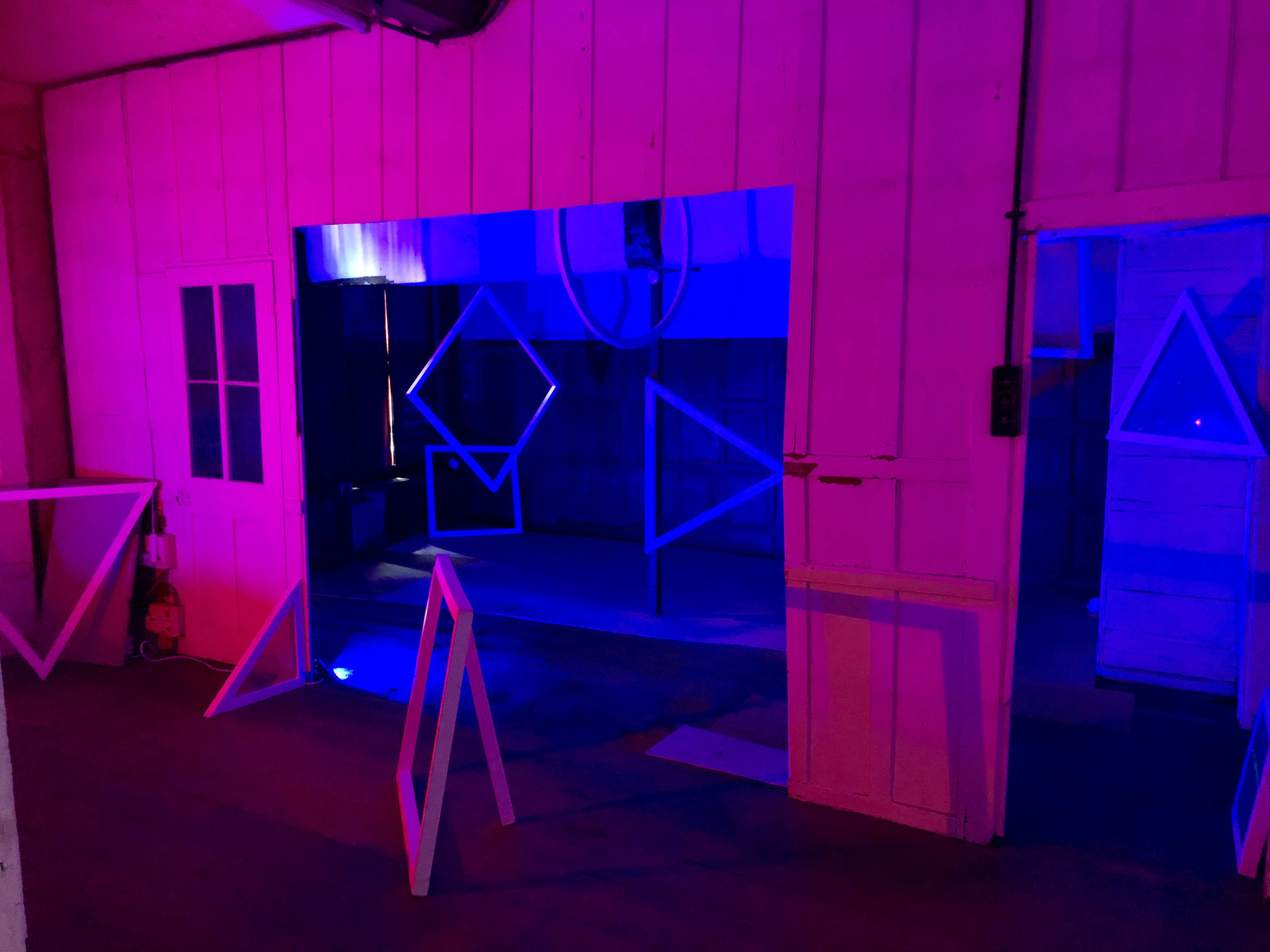 Switch was an exhibition that displayed six varying ways of resolution and technique in a rectangular glass space of three-dimensional luminosity. Pottered around the room were objects uniquely handcrafted by each of the six artists displayed to integrate with the rectangular structure’s walls and window sills. Leaning, balanced, suspended, tilted and tangled each object was displayed differently but characteristically shared an uncanny resemblance to each other. Each piece different in terms of craftmanship yet emphasised a theme of shape whilst utilising a primary colour palette with the odd hint of light blue, pink and varying shades of green. An exhibition made with the purpose of immersive experience and conscious composition planning allowed for the access to weave through the art work-triggering motion sensor lights whilst on the trail through the geometric haven.